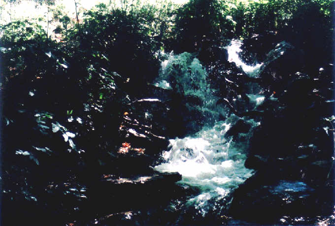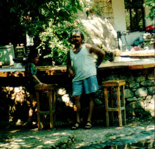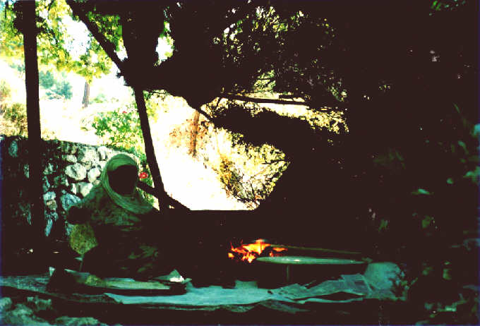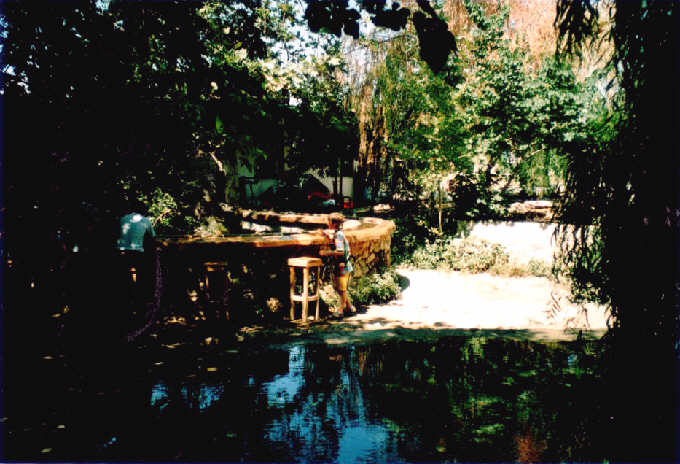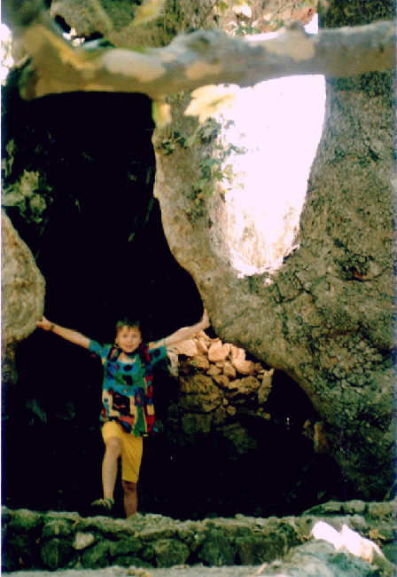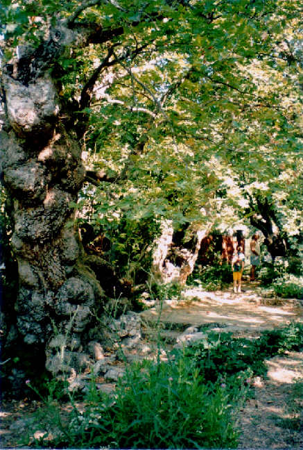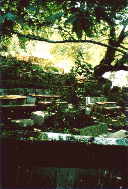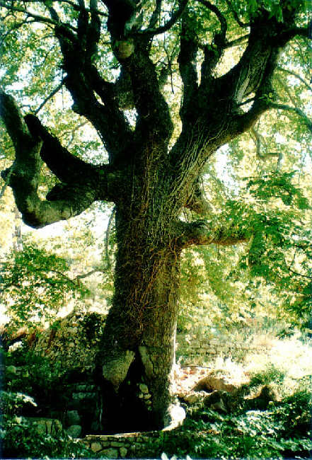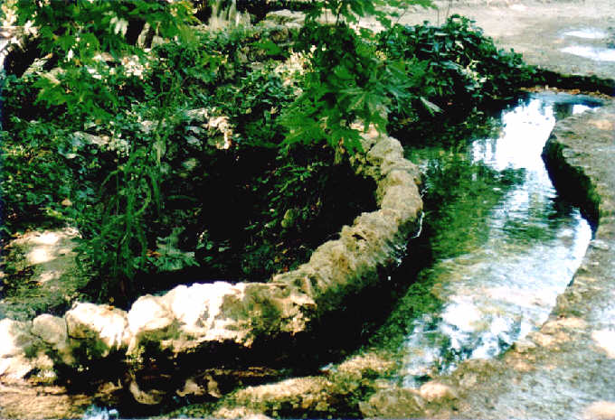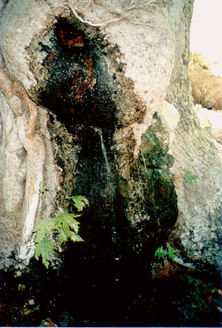 Der Bach fliesst von unten durch einen mächtigen Olivenbaum - und kommt am Stamm (in Höhe 1,50 Meter) wieder heraus... |